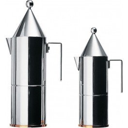 Conçue entre 1980 et 1983, la cafetière LA CONICA est l'évolution du "Tea & Coffee Piazza", qui avait vu de grands architectes travailler sur la conception d'un service à café et à thé. C'est le premier projet de Rossi pour la grande série, et avec sa forte image emblématique, cette cafetière devient immédiatement le produit phare de la marque, puis de la toute nouvelle marque "Officina Alessi", ainsi qu'une icône du design des années 80.