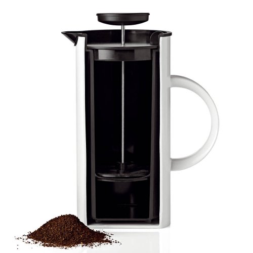 CAFETIÈRE À PISTON DE STELTON. Le pichet isotherme classique d'Erik Magnussens est maintenant livrable dans une version actuelle avec une nouvelle fonction. Le pichet isotherme fameux, conçu pour Stelton en 1977, est maintenant disponible comme cafetière à piston. Vous pouvez préparer jusqu'à 8 tasses de café. La cafetière double paroi garde le café chaud. Pour servir du café il faut simplement tourner le couvercle. La cafetière est livrée avec une cuillère doseur. Le piston est lavable au lave-vaisselle.