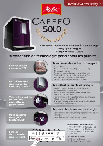 Fonctionnalités du produit Melitta Caffeo E 950-105 SOLO Machine à café automatique 15 bars, 1400 W, Violet :